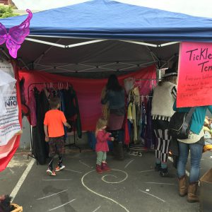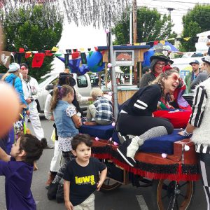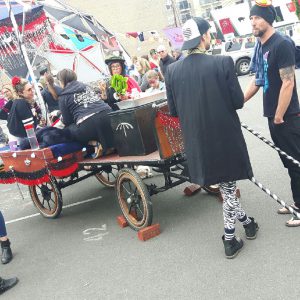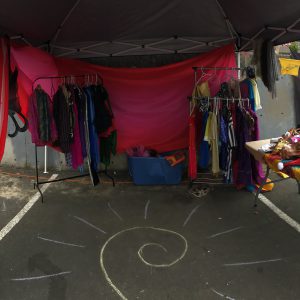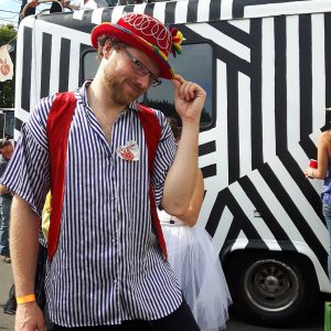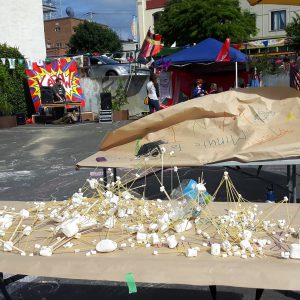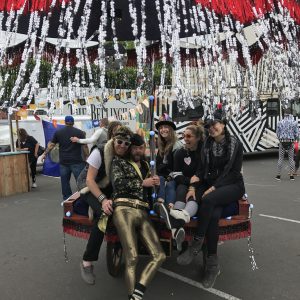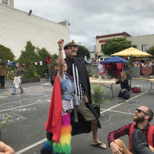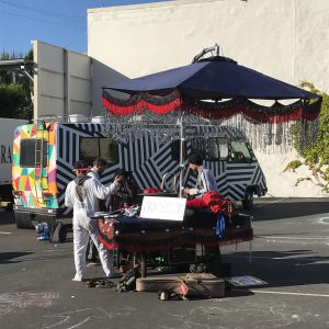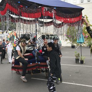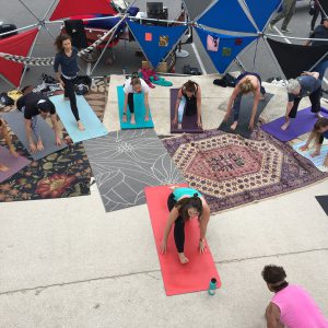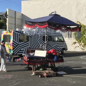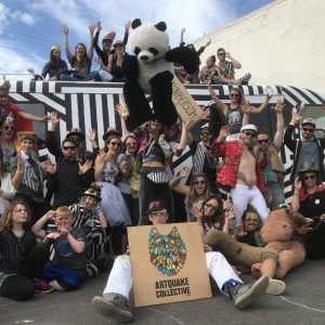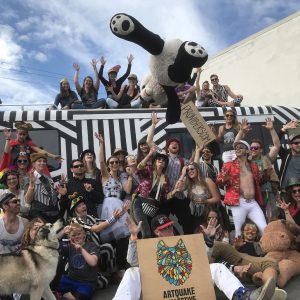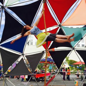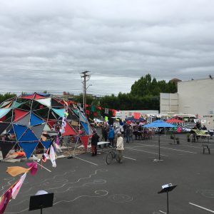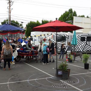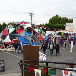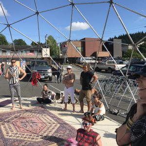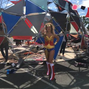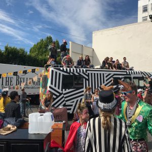The day started off with morning yoga in the dome, followed up by some juggling and a talent show. Bodies were busy painting Wanda the RV (courtesy of Artquake) while donning themselves in the latest costume fashions out of the tickle tent. The big debut for the 2016 KAPOW winners: BellingHops, State of the Solar System, the bioluminescent State Street bike rack and of course, the Provibers’ (People’s Choice Award winners) long-awaited Uuntzbrella – and boy was she glorious.