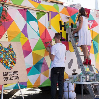 With over 20 pounds of dry ice and 300 ice cream sandwiches, “Hug Life” became an overnight international sensation – in every sense of the words. Learn more about the Artquake Collective here.